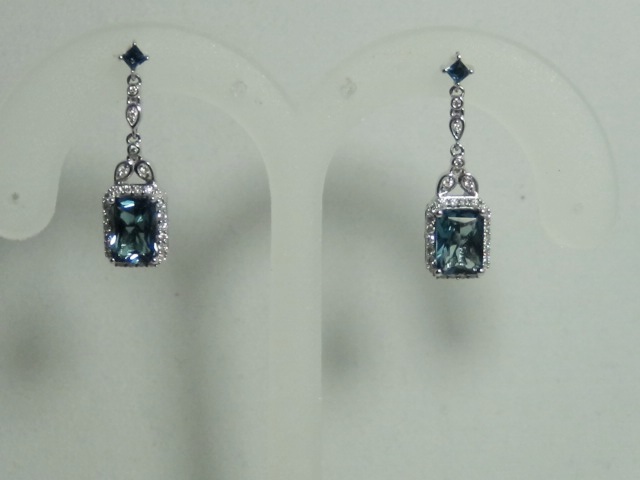 WHITE GOLD DIAMOND AND LONDON BLUE TOPAZ EARRINGS
