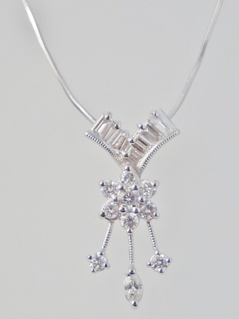 Flower Pendant with Round & Baguette Diamonds
