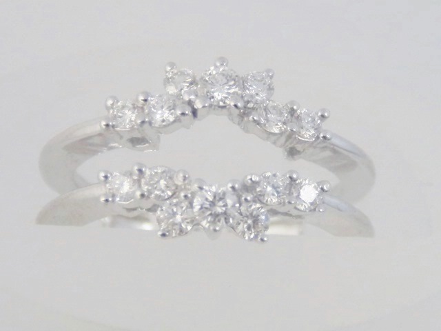 Ladies 14k white gold ring guard with round diamonds. The approximate diamond weight is .58ct. We have 2 in stock.