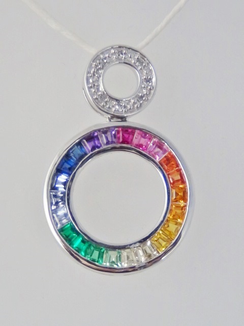 Multi-Colored Sapphire & Diamond Circle Pendant