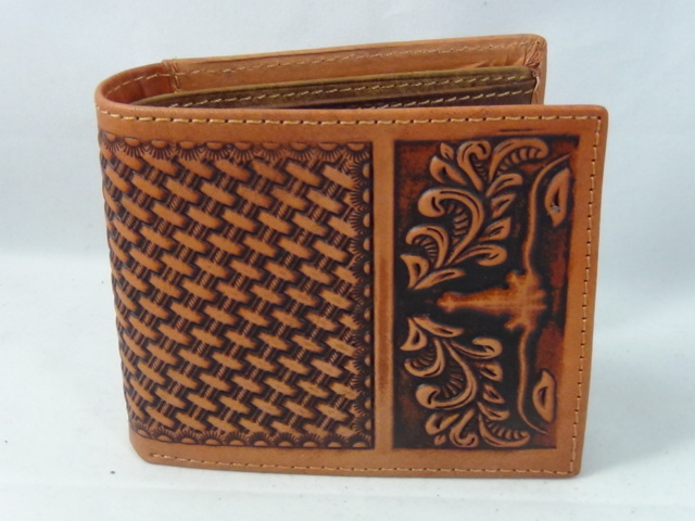 Mens Light Brown Small Wallet With Embossing And Longhorn. We have two in stock.