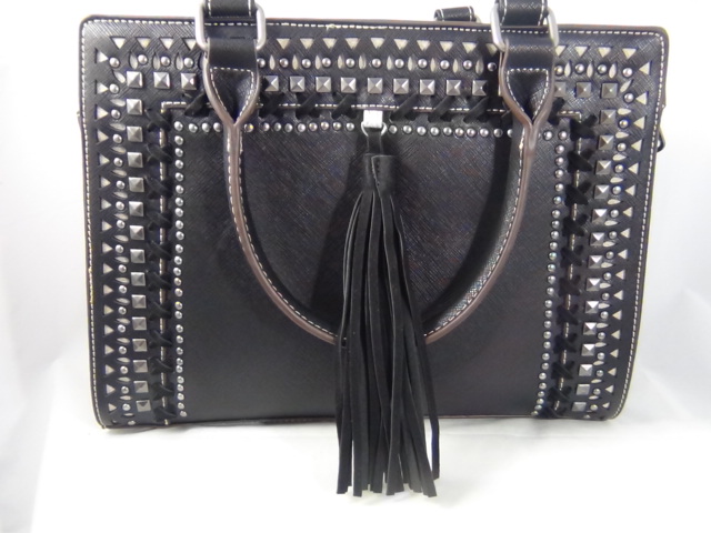 MONTANA WEST CONCEAL AND CARRY BLACK PURSE WITH SILVER STUDS AND FRINGE TASSLE