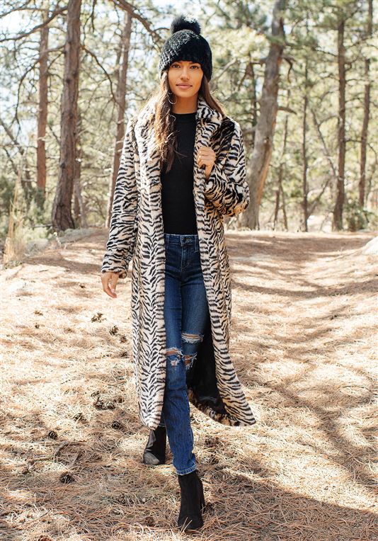 TIGER BACKSTAGE MAXI FULL-LENGTH FAUX FUR COAT