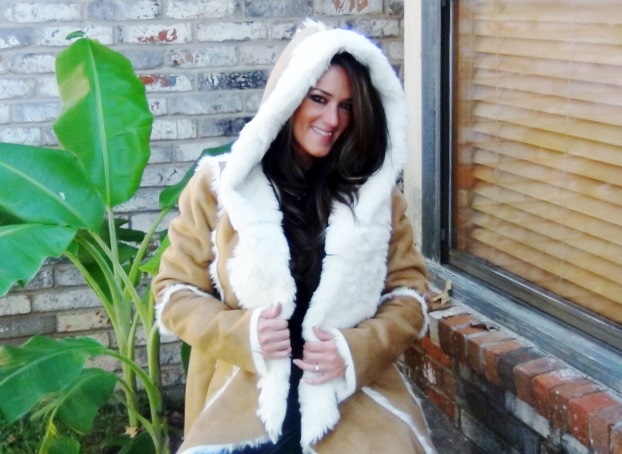 LADIES TOBACCO WITH IVORY FAUX FUR JACKET. WE HAVE ONE SIZE SMALL IN STOCK.