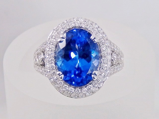 Ladies 14k white gold ring with a trillion cut garnet and diamond along the sides of the band.