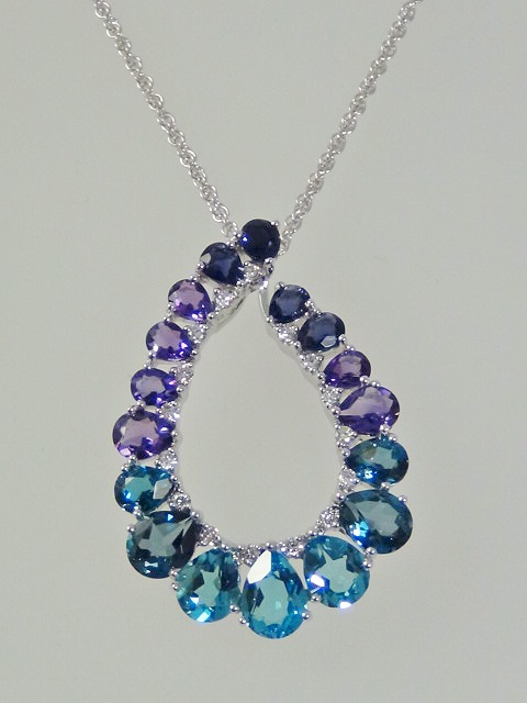 Ladies 14k White Gold Pendant With Amethyst, Blue Topaz And Iolite. We Have One In Stock.
