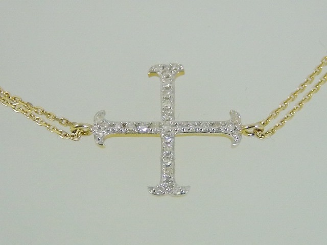 Ladies 10k Yellow and White Gold Cross Bracelet With Diamonds. We have one in stock.