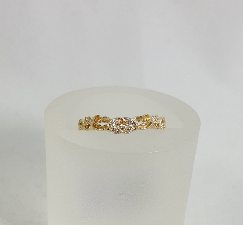 LADIES 14 K YELLOW GOLD AND DIAMOND BAND. TOTAL DIAMOND WEIGHT IS 0.04 CT. WE HAVE ONE IN STOCK.
