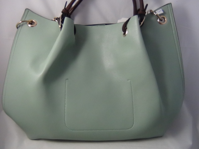 MINT GREEN LARGE PURSE WITH BROWN HANDLES AND GOLD HARDWARE