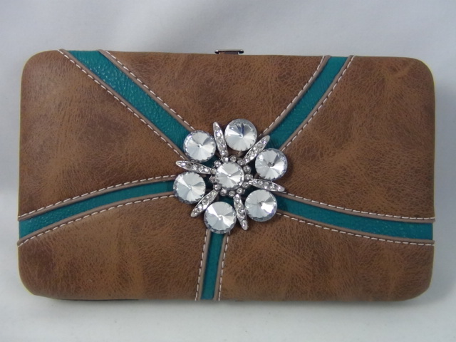 Orange And Brown Faux Alligator Purse With Silver Studs And A Rhinestone flower