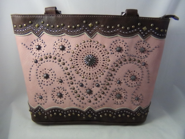 MONTANA WEST CONCEAL AND CARRY PINK WITH BROWN AND GOLDS STUDS AND SILVER CONCHOS